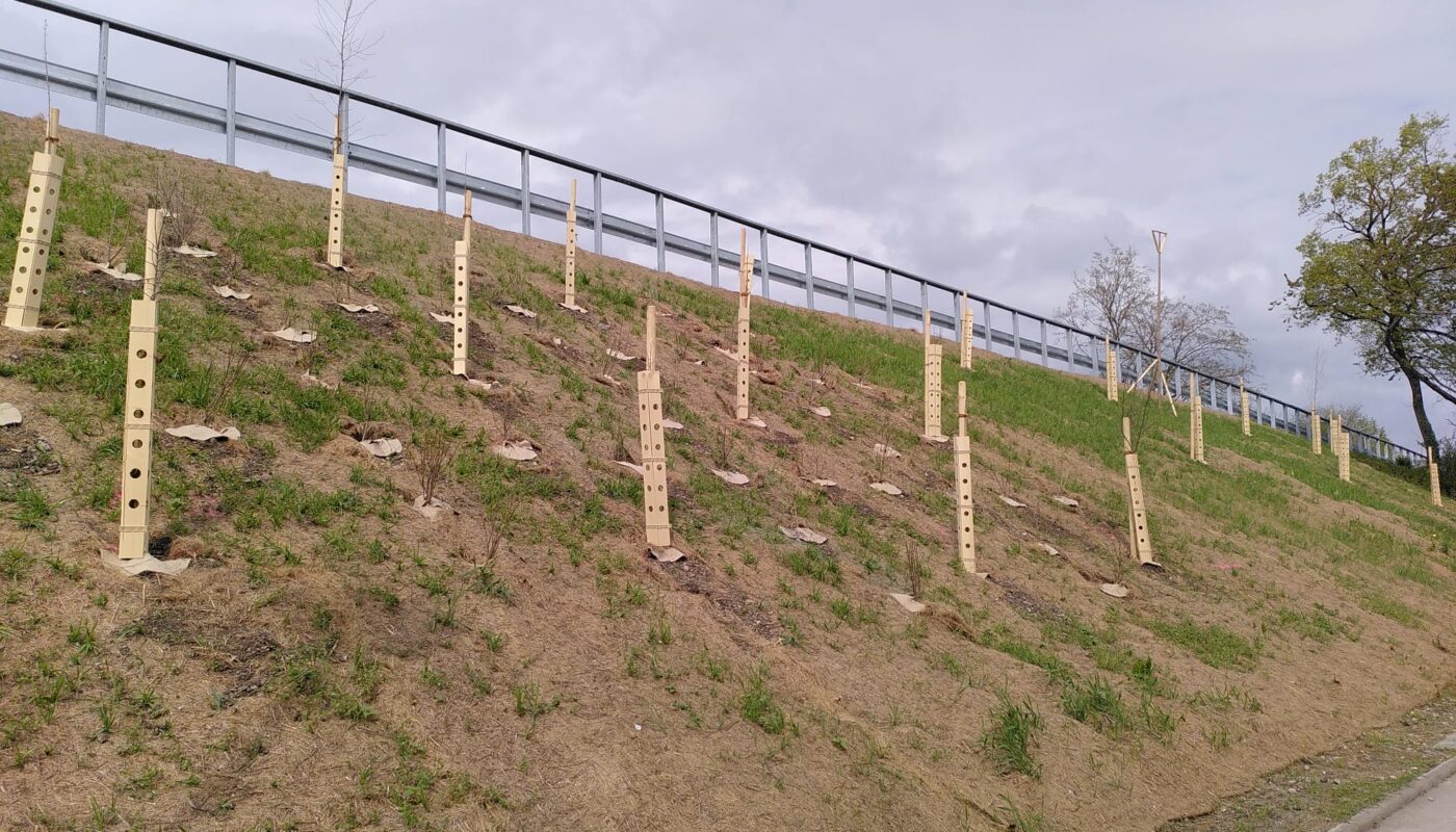 Deshalb fordern wir vom Landkreis substanzielle Nachbesserungen: Mehr und größere Bäume sowie die Entfernung des Kunststoffnetzes!