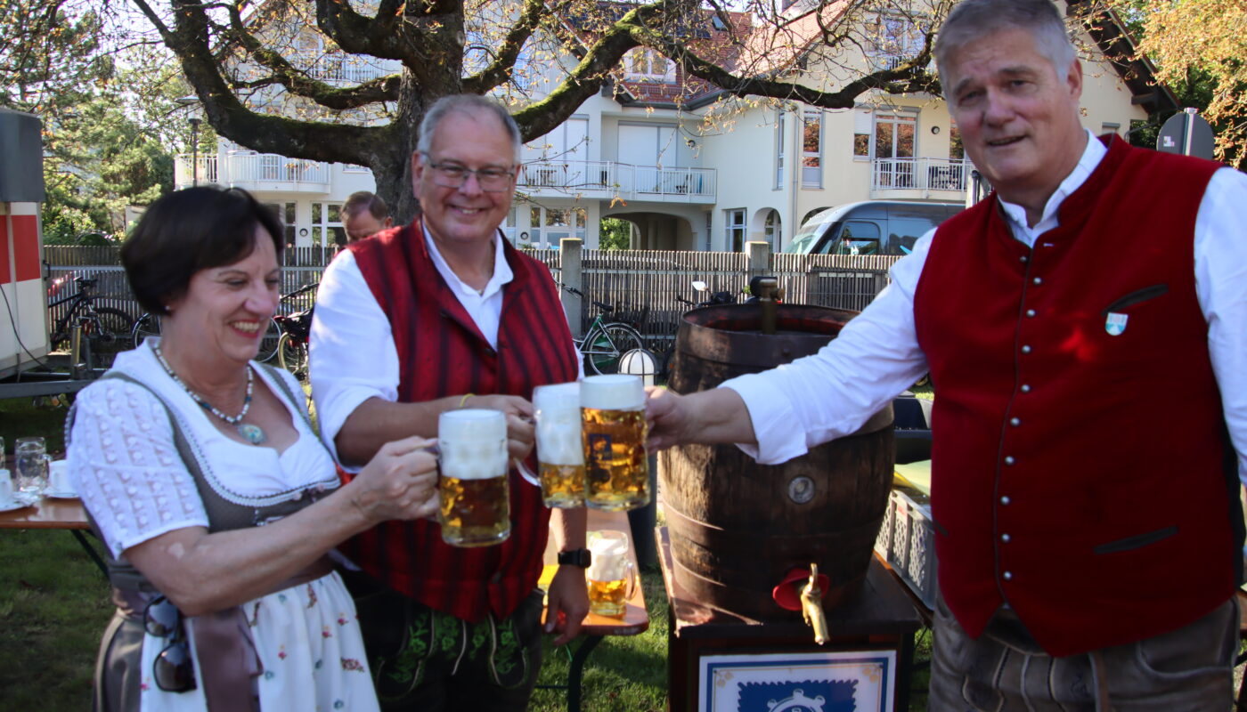 In guter Tradition lud die SPD Garching auch dieses Jahr zur kleinen Vorwiesn. Bei wundervollem Wetter kamen über 200 Garchingerinnen und Garchinger in den Römerhof. Als besonderer Gast war der SPD-Landratskandidat und Unterhachinger Bürgermeister Wolfgang Panzer zugegen. Dieser ließ es sich nicht nehmen, es dem Garchinger Bürgermeister gleich zu tun und das zweite Fass zu spendieren. Die nächsten beiden Fässer gingen auf Kosten des Dritten Bürgermeisters Joachim Krause und seiner Frau Helga Listl-Krause. Bodo und Jan von der Garchinger Band „Bodo and the Giants“ hielten bereits zum zweiten Mal mit rockiger Live-Musik die Stimmung hoch. Selbstgebackener Kuchen und Deftiges vom Grill sorgten für die nötige Grundlage.